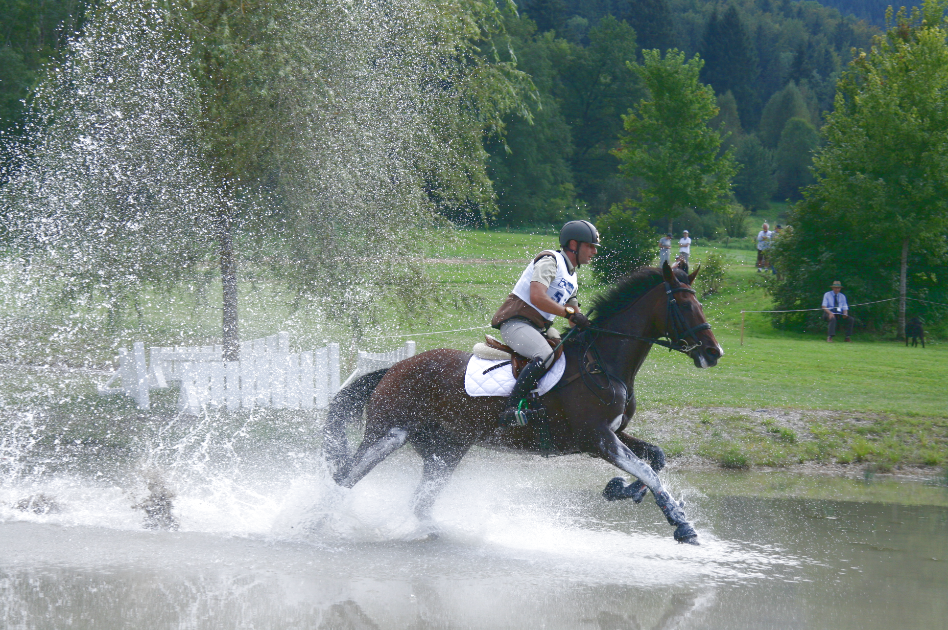 In der Springprüfung am Nachmittag wurden die Weichen für das abschließende Gelände gestellt, denn der Parcours forderte gutes Augenmaß und Geschick von Reiter und Pferd. Hier gelang der Schweizerin Andres eine saubere Runde, mit der ihr die Führung sicher war. Auch Charlotte Whittaker konnte mit Platz 3 im Springen ihren Vorsprung ausbauen, während die Schweizerin Brigitte Peterhans mit Fantasia de Lully, mit Platz Zwei im Springen die Verfolgung aufnahm und Sonja Buck mit Carla Bruni ihr gutes Ergebnis der Dressur (Rang 6) im Springen wieder unter den 10 Besten (Rang 9) konstant halten konnte. Mochito und Sophie Grieger konnten den Parcours ebenfalls ohne Abwürfe meistern, mussten jedoch einen Strafpunkt für Zeitfehler verbuchen. Somit blieb es spannend nach den Dressur- und Spring-Wettbewerben am Samstag für den Ausgang der 1- Sterne Vielseitigkeit für das Kernstück, dem Geländecross am Sonntag.