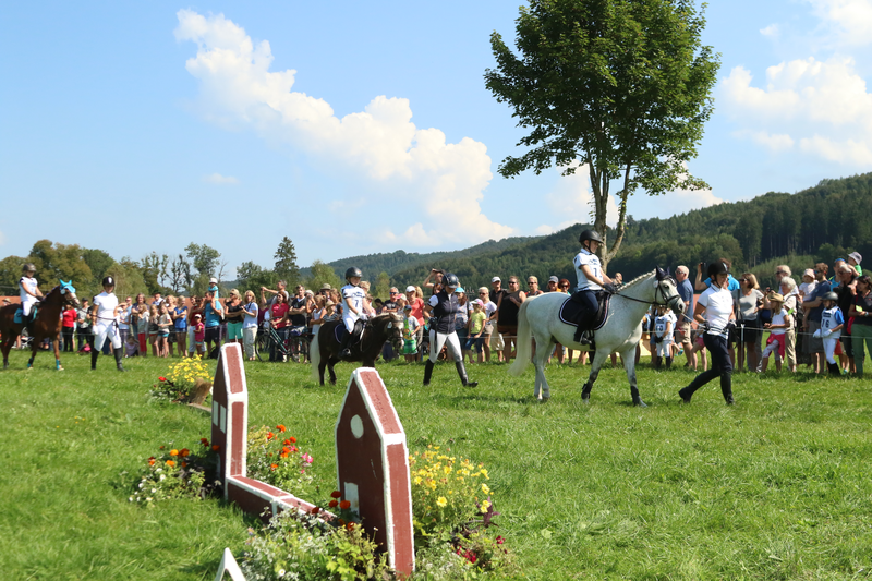 Auch der Geländepferde-Nachwuchs konnte sich im Ettenhuber Jungpferdecup der 4- und 5-jährigen Pferde seine Eignung als Vielseitigkeitspferd beweisen und musste hierfür eine kurze Dressur-, Spring- und Geländeprüfung absolvieren. Gleichzeitig wurde aus dieser Prüfung auch das Beste der 4-jährigen bayerisch gezogene Pferd ermittelt. Zur großen Freude des Landstallmeisters konnte der 4-jährige Fürstenstein von Fürst Fugger – Del Piero aus der Zucht von Ferdinand Sanladerer, Besitzer HLG Schwaiganger, mit seinem Reiter Andreas Kölbl, die goldene Schleife der Prüfung holen und damit den Titel des Champions der 4-jährigen bayerischen Geländepferde 2016.